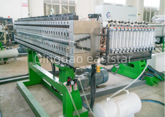 Біз жабдықтадықPP қуыс тақталық жабдықтарыүздіксіз өндірісті қамтамасыз ету үшін толық көмекші жүйемен. Қос станцияның гидравликалық экранды ауыстырғышы 2,2 кВт гидравликалық станциясымен жабдықталған, экранды тоқтатпай-ақ экранның өзгеруіне мүмкіндік береді. Әуе салқындатудың қуатты құрылғысы 18 өндірістік жанкүйермен жабдықталған, ал тақталардың жеткілікті салқындауын қамтамасыз ету үшін жалпы қуаты 4,5 кВт. Екіншісітартқыш машинаҚұртқа берілісті редуктор және сервокты, қуаттылығы, 3 кВт қуаттылығы, алғашқы тарту машинасы бар толық тартылу жүйесін қалыптастырады.