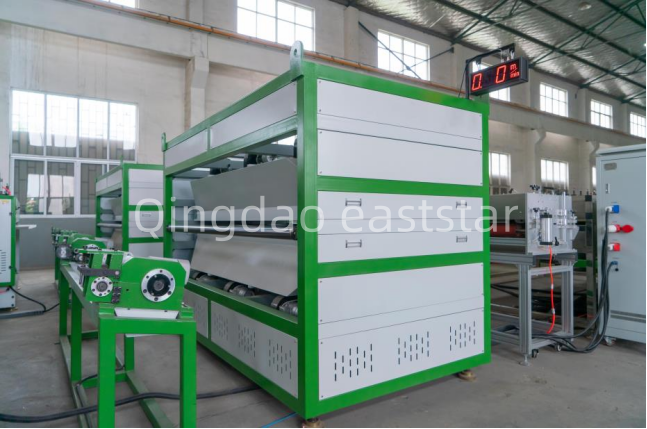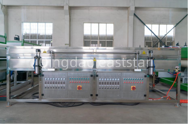 БүкілPP ашық ұяшықтың тор панельдік жабдықтарыСондай-ақ аҚос станцияның гидравликалық экранның өзгеруі, аТегіс пеш, және акүштіАуа салқындату құрылғысы. Алғашқы тартылыс машинасы 6 жұп 12 резеңке роликпен жабдықталған, олардың әрқайсысы 7,5 кВтс моторымен басқарылатын роликті бетінің өлшемі 250x2300 мм. Тұмшапештің тегістеу пешінде тақталардың тұйықтығын қамтамасыз ету үшін 16 аймаққа бөлінген температураны бақылау диапазоны 40 ℃ -150 ТаPP қуыс тақтасы Өндіріс желісіАвтоматтандырылған өндіріске қол жеткізу үшін көлденең кесу машинасымен және жинақталған платформамен жабдықталған.