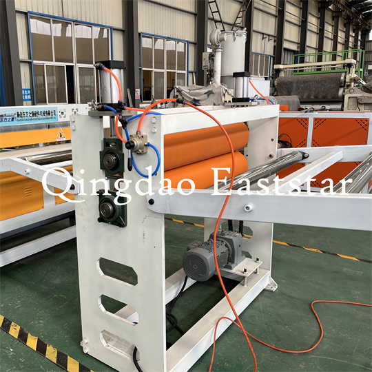 PVC-ге қарсы төсеніш жабдығы Жұмсақ парақ машинасы: жабдық негізінен бір бұрандалы экструдерден, үш роликті калибрден, салқындатқыштан тұрады