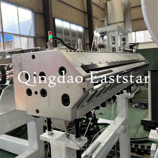 PVC-ге қарсы төсеніш жабдық Машина: Жабдық негізінен бір бұрандалы экструдерден, үш роликті калибрден, салқындатқыш кронштейннен, резеңке роликті тарту машинасынан, жылжыту машинасынан және конвейер таспасынан тұрады.