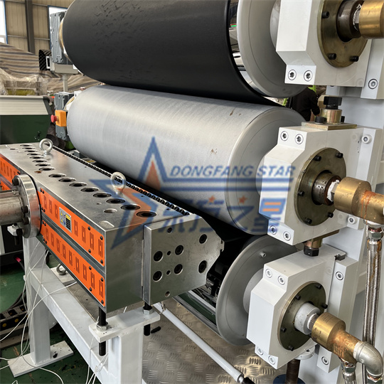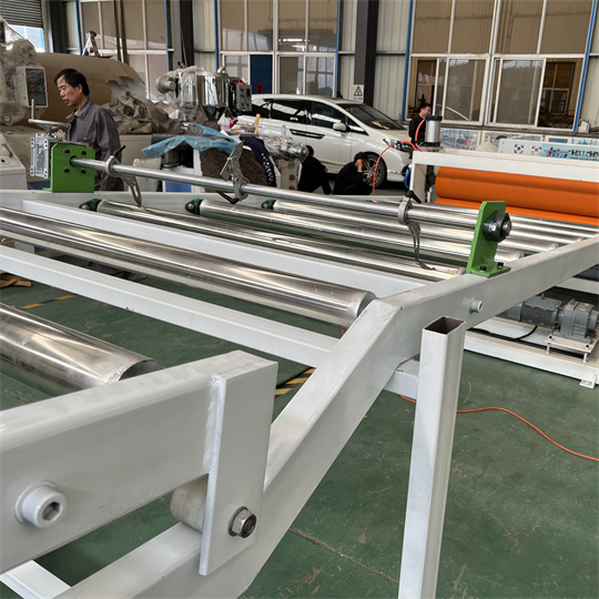 ПВХ-ның статикалық тақтасының жабдықтары: Жабдық негізінен 120 бір бұранданы экструверден, үш роликті калибрден, салқындатқыш кронштейннен, резеңке роликті тарту машинасынан, жылжу машинасынан тұрады және