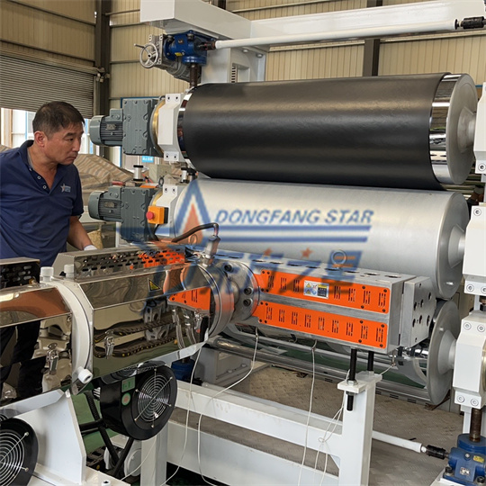 Жұмсақ ПВХ-ның антистатикалық экструдерлік жабдықтары: Жабдық негізінен 120 бір бұранданы экструдер, үш роликті калибр, салқындатқыш кронштейн, резеңке роликті тартқыш, және а