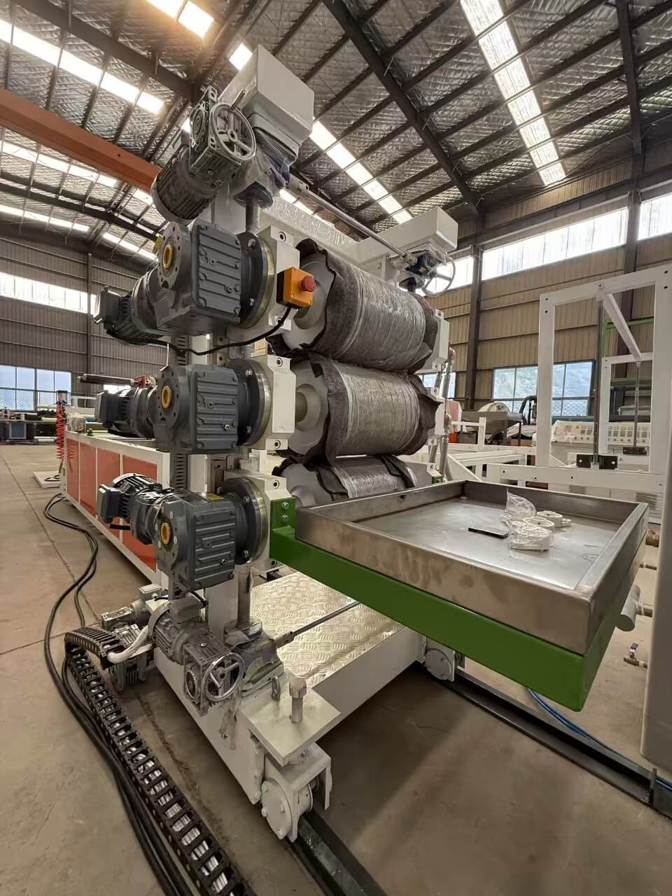 TPU / PE / PP / PP / PP / PS-300 VILE SHAST LINE ТПУ, ЖК, PE, PP және PS түйіршіктерін немесе ұсақталған қоспаларын өңдеуге арналған. Өндірістік қуаттылығы ** 60-100 кг / с **, желілік Siemens және Omron сияқты жетекші брендтердің компоненттері кіреді. Онда 0,8-3 мм парақ, үш роллдар калибрі және орамалы машина бар, сапалы өнім береді. Жабдық сапалы сапа стандарттарына сәйкес келеді және жұмыс және техникалық қызмет көрсетудің қарапайымдылығы үшін кешенді техникалық құжаттаманы қамтиды.